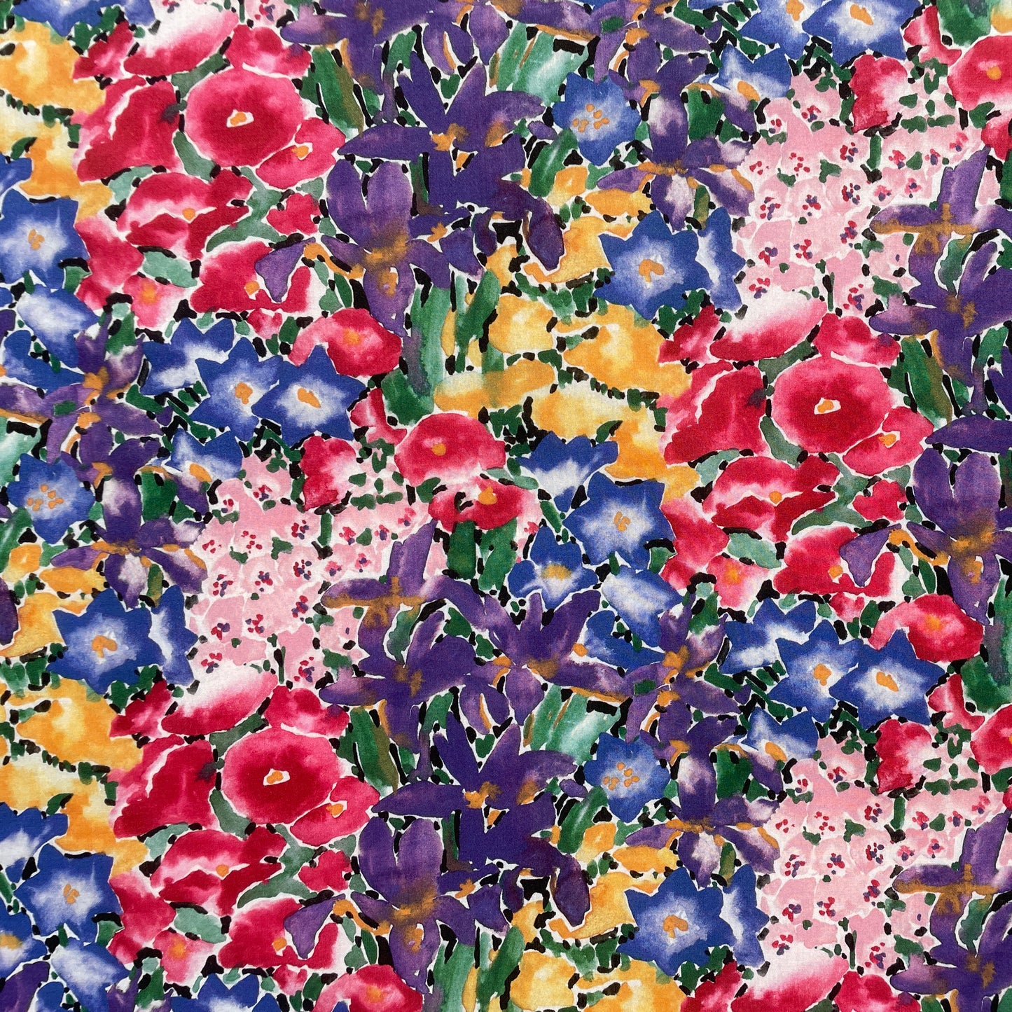 Created in 1989 by Pru Roskrow who headed the Liberty textile design studio during the 1980s, this wonderfully tactile botanical celebrates her signature painterly approach. Expertly transferred onto fabric to preserve even the most subtle watercolour nuances, Ellis Garden emerges as an almost impressionistic floral medley.