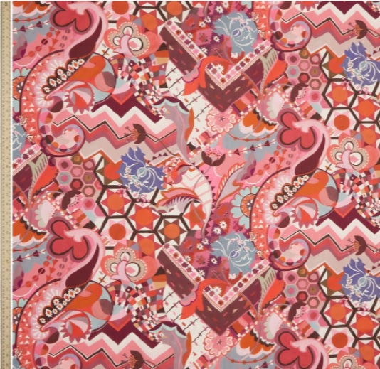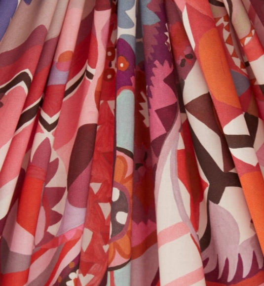 مستوحاة من مزيج من الأوشحة في أرشيف الحرية التي يرجع تاريخها إلى السبعينات ، تم رسم تصميم واسع النطاق في الغواش الملمس حيث تجلس الأشكال الهندسية الجريئة إلى جانب زهور الفن الحديث ، وأشكال Ikat المعقدة و paisleys.
