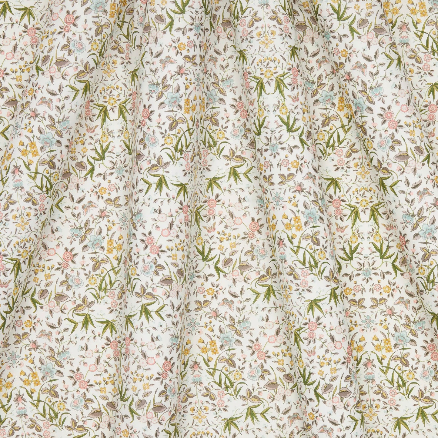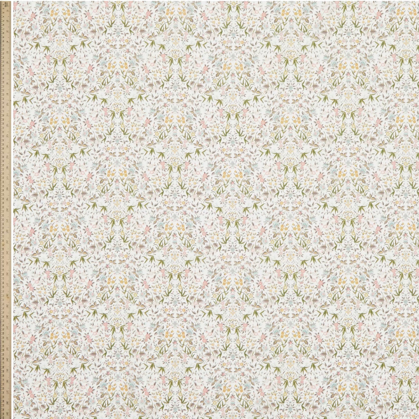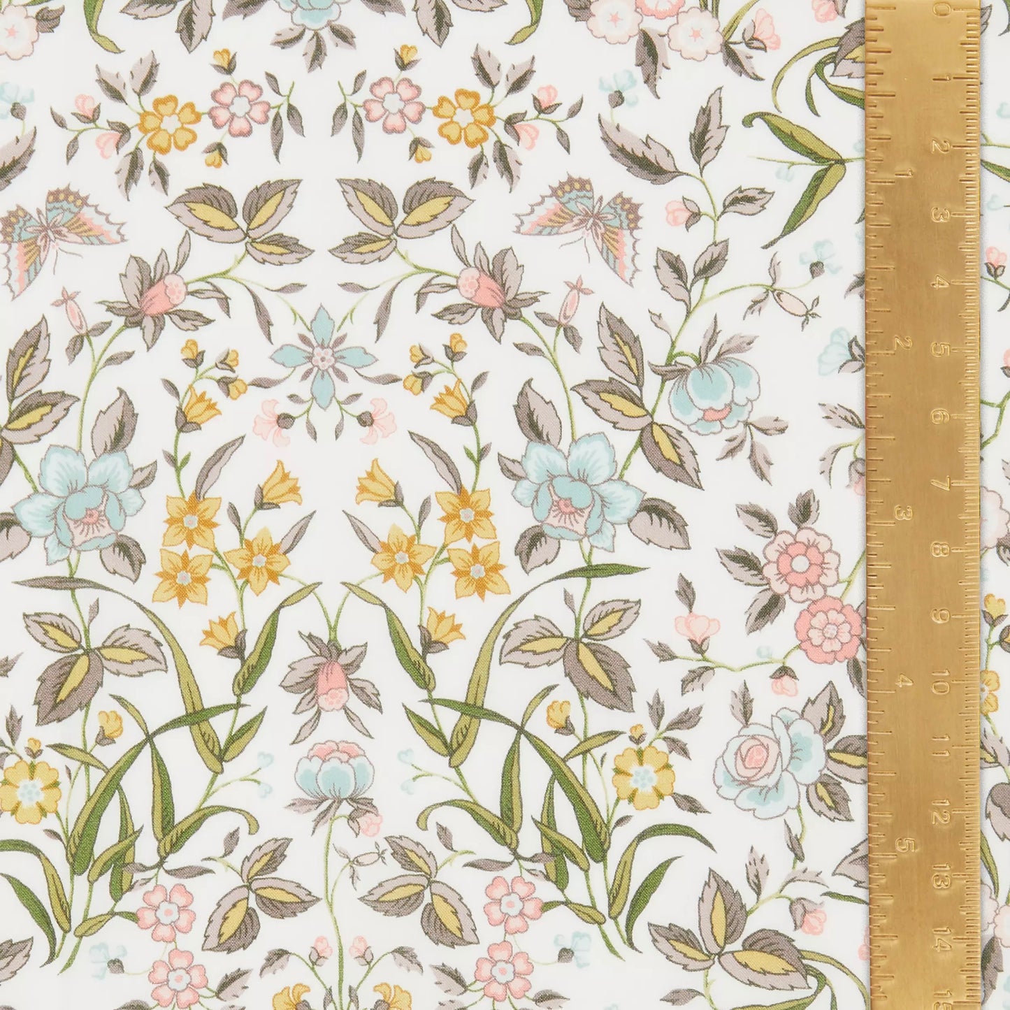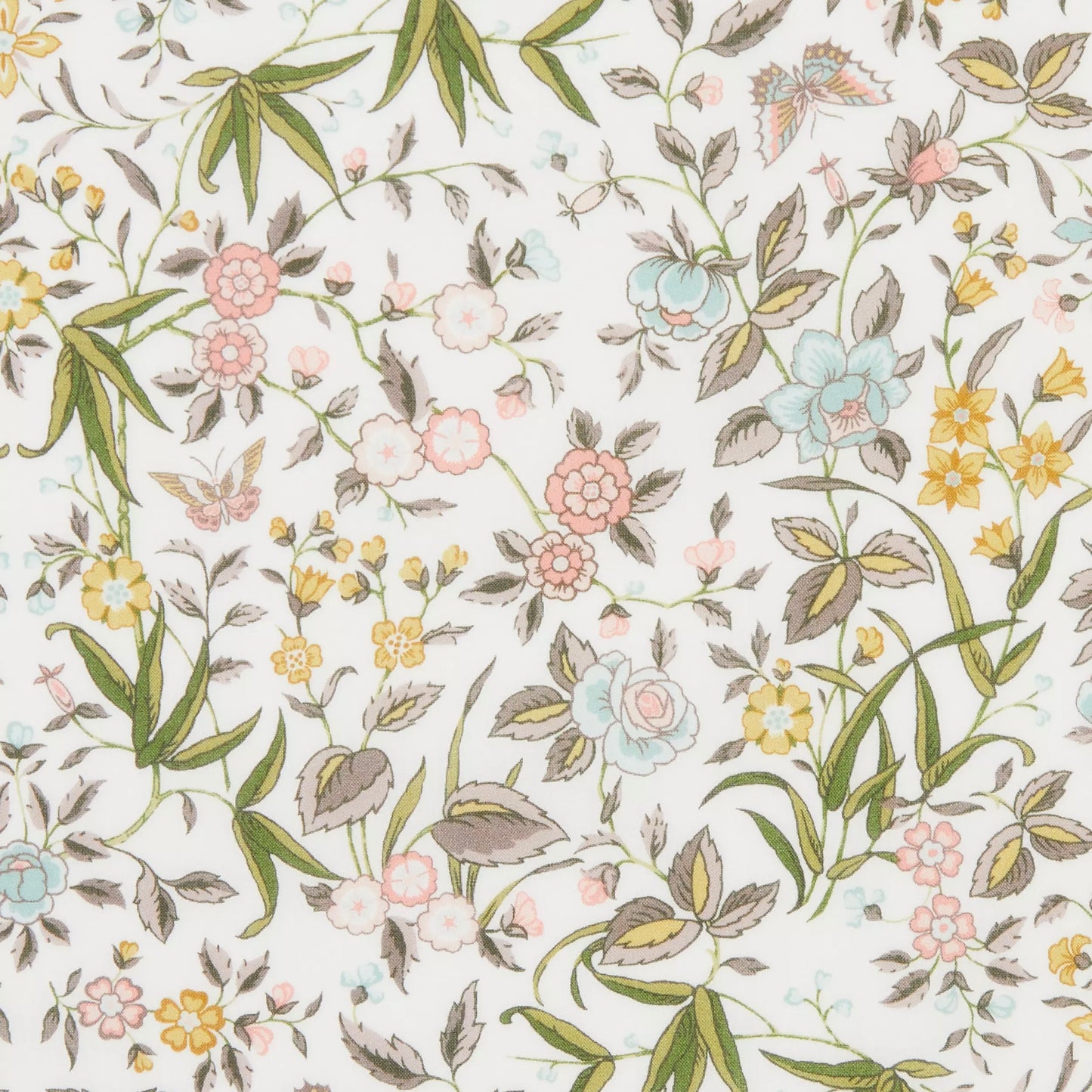 Inspired by an artwork from the Liberty archive, this botanical print features trails of beautifully illustrated flowers, complemented by elegant leaves and colourfully camouflaged butterflies.