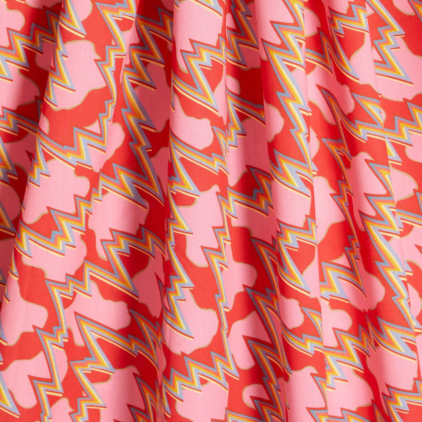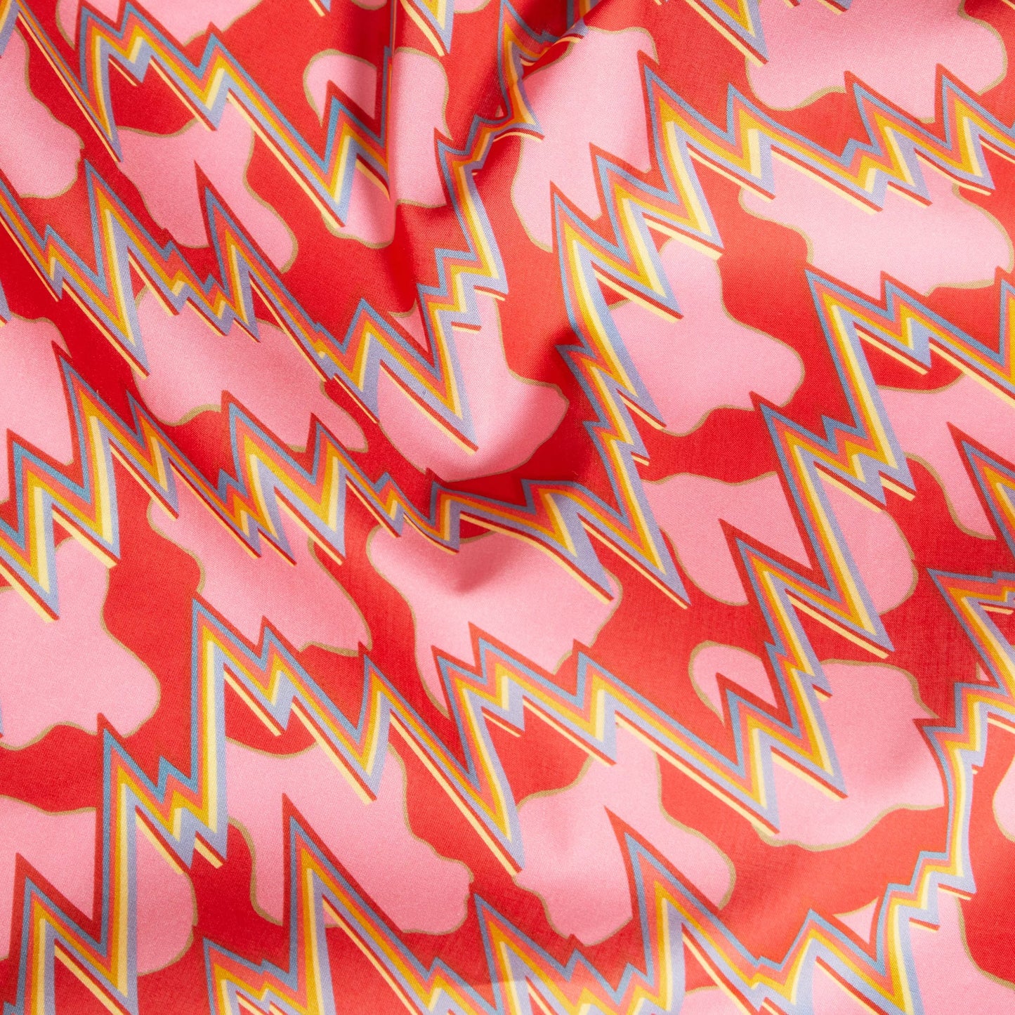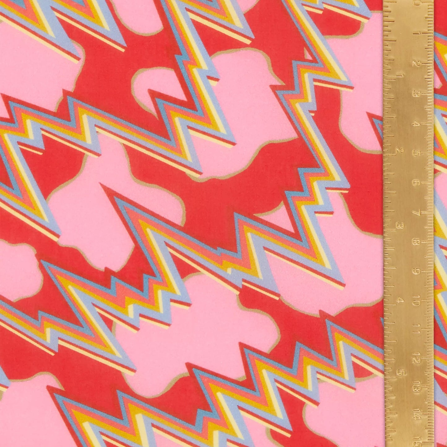 Pas på Zeus vrede i dette slående geometriske design. Gentegnet fra et arkiv Liberty layout oprindeligt trykt i 1971, sætter det fokus på tordenkilen - et ikonisk symbol på den øverste gud i græsk mytologi. Stormskyer og takkede lyn skaber en dynamisk følelse af synergi og oplyser himlen med farverig højspænding. Zeus er en del af universets historie i vores efterår/vinter 2023-kollektion - disse designs afspejler historiernes vedvarende symbolske kraft til at forklare verden omkring os og fanger en verden af voldsom lidenskab og drama.