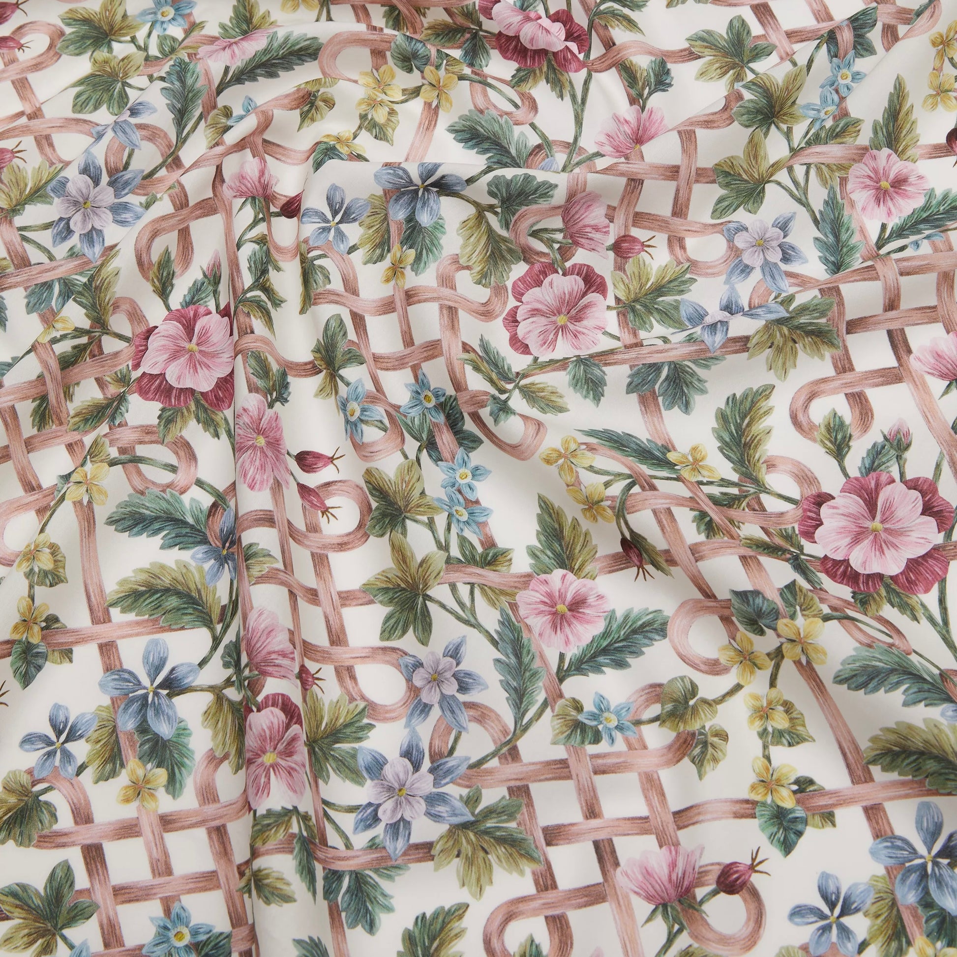 Botanical Knot transports us back to Liberty's 1900s needlework department, which sold many designs in the style of multi-talented Arts and Crafts luminary, May Morris. Inspired by her distinctive aesthetic, this botanical trellis was hand-painted in gouache and delicately overlaid with pencil marks, echoing the intricacy of her embroidery stitching. Its flowers and foliage entwine through a lattice of interlocking knots, further honouring Morris's work, which often featured Celtic-influenced knotwork motifs. This print is part of the anniversary collection’s final chapter, Collectibles. Offering a design for each decade, this timeline of hero prints encapsulates 150 years - exploring the design house’s varied and influential handwriting while honouring key moments of creativity and discovery.