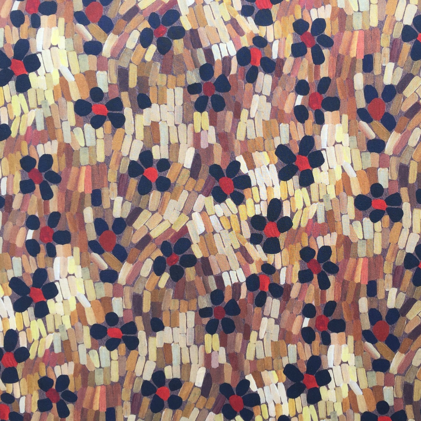 Daisy Roar adalah cetakan pola hewan yang terinspirasi oleh miniatur arsip yang menggabungkan stroke sikat tebal dan tonal, desain ini dilukis menggunakan cat akrilik untuk menciptakan gerakan mengalir dari bentuk seperti aster.
