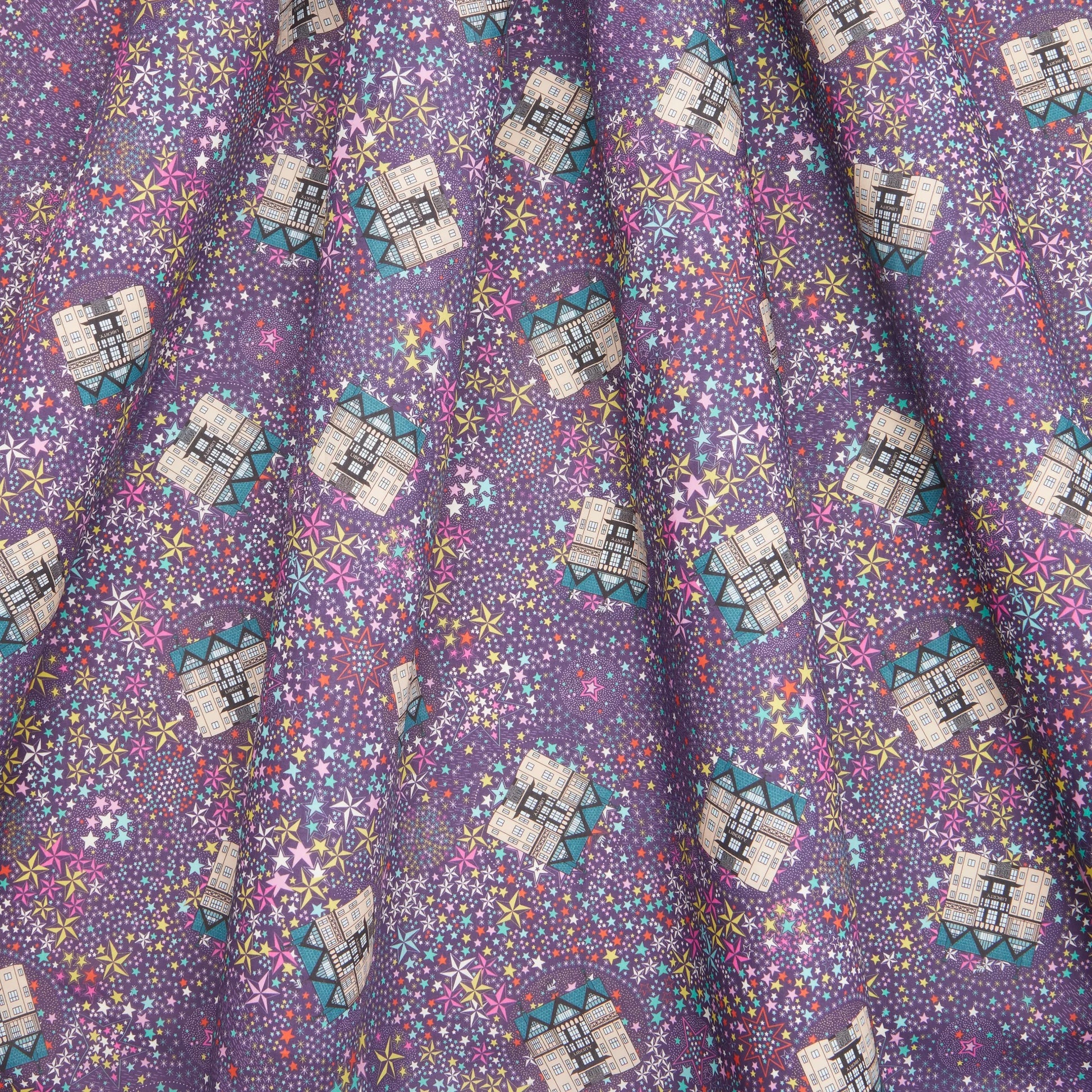 Originally created in the Liberty design studio for Autumn Winter 2011, this artwork has been reimagined to include the Liberty flagship for the Festive Collection. Featuring a galaxy of swirling stars in a whirl of vivid shades, Adeladja Belle showcases the charming details of the Regent Street building. Look out for the little windows under the eaves and the Mayflower ship weathervane on the roof.