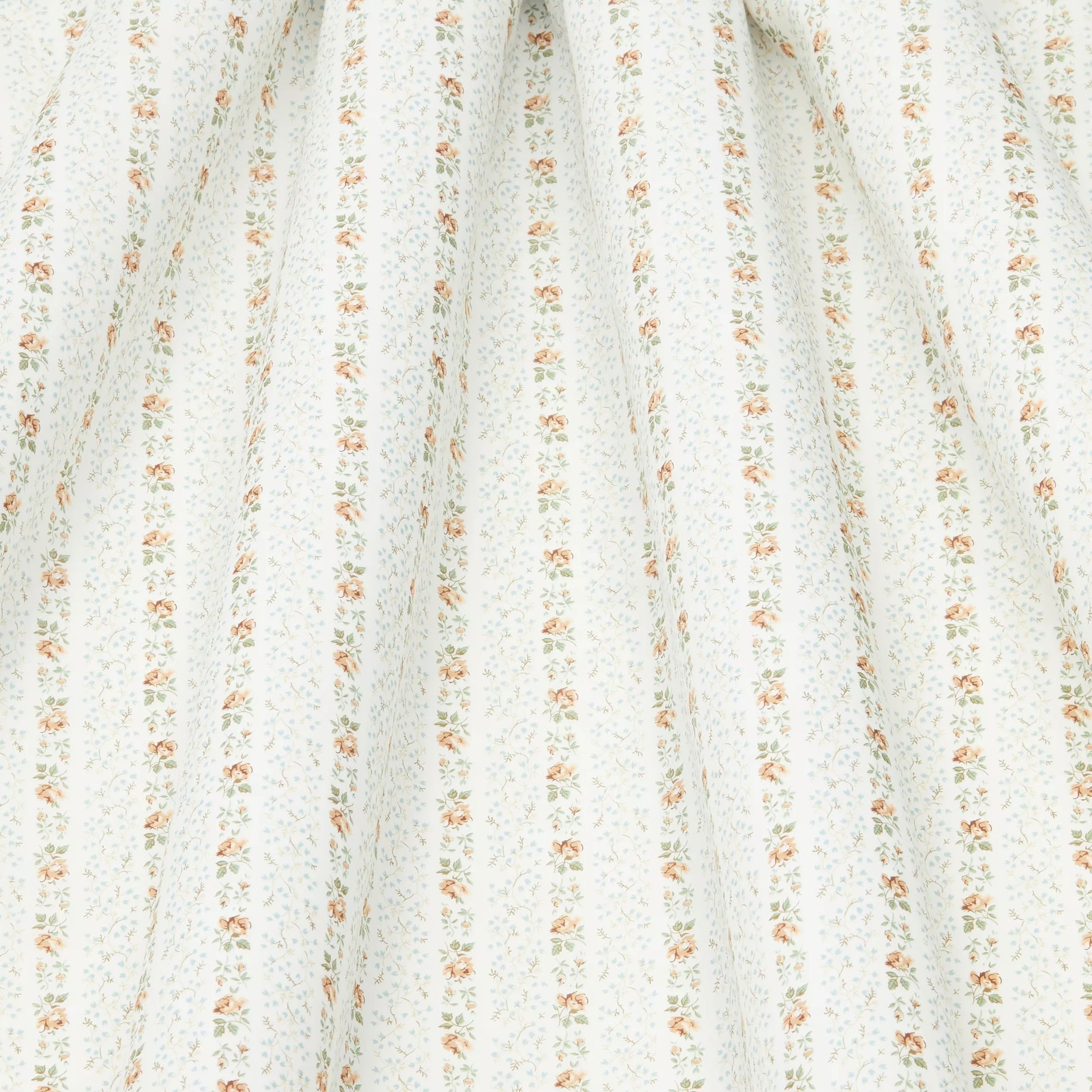 Drawing inspiration from a vintage Liberty design originating in 1957, Evie Stripe has been lovingly revived with a touch of modern finesse and recoloured in a variety of light and dark palettes. Its exquisite blend of delicate buds and roses, intricately woven into a directional stripe layout, imbues the pattern with a uniquely eclectic charm.