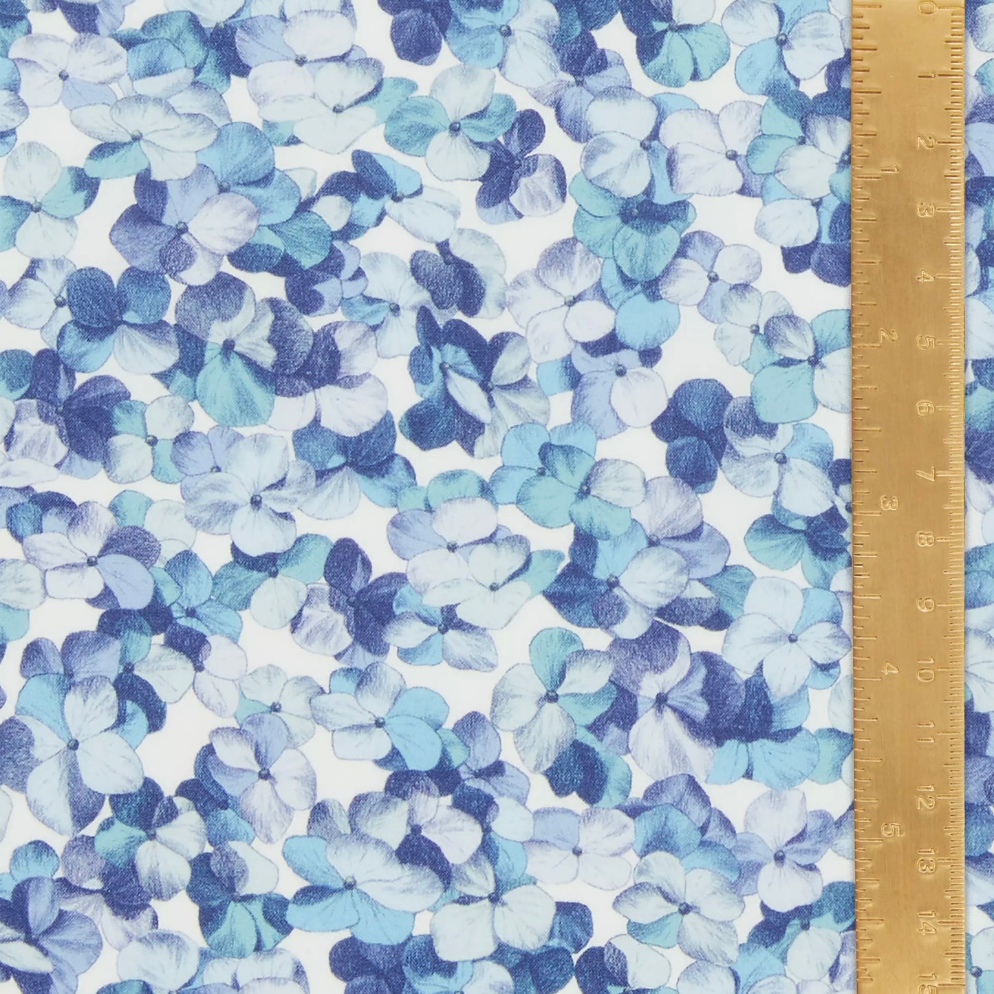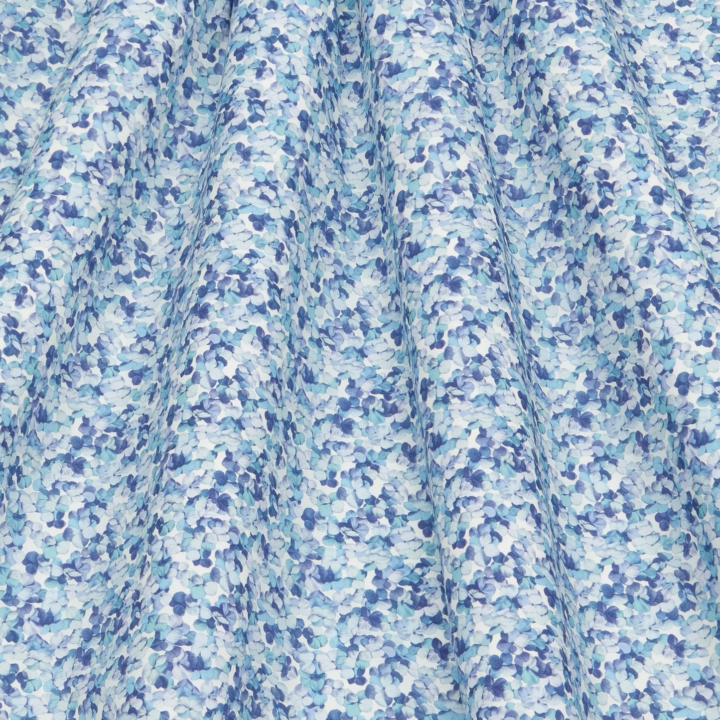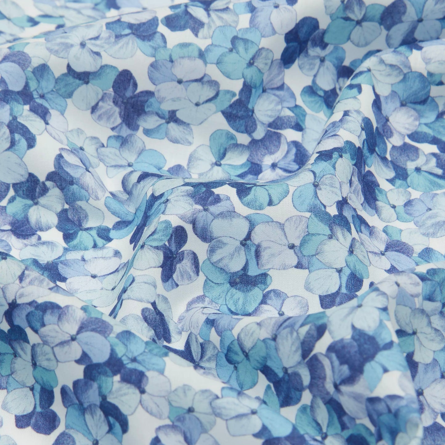 Shining a light on a humble gardener’s favourite, Hilary Ann is a dense, all-over floral made up of delicate hydrangea petals. It was drawn with pencil and coloured digitally, to add a sense of depth and movement. This print is part of the Blue story of our Spring/Summer 2024 collection, discovering it as a jewel-like droplet wherever it appears, with expansive palettes taking inspiration from the brilliance of Egyptian blue, and from the dreamy, washed-out vistas found above the clouds.