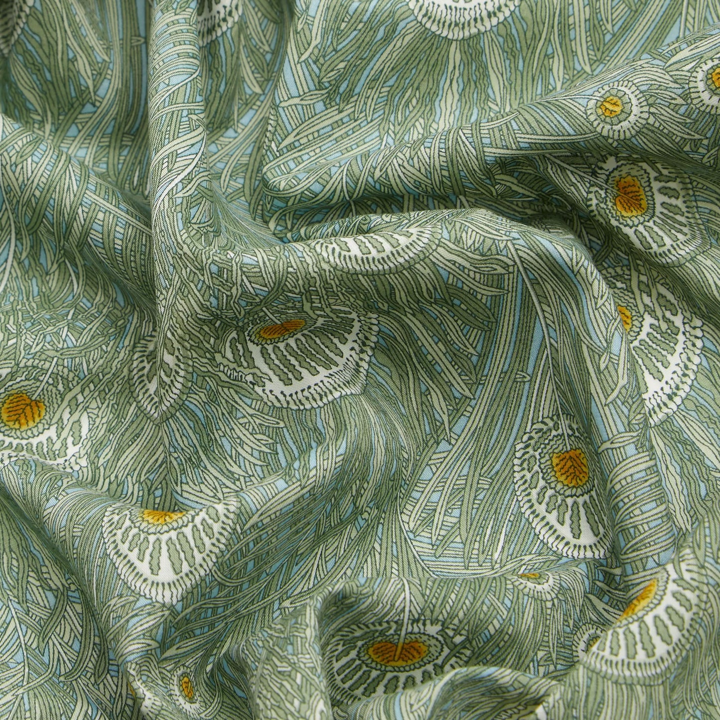 Hera, som er oppkalt etter den greske gudinne hvis hellige dyr var påfugl, er et sann arv-ikon Liberty Fabrics Og har prydet Liberty design helt siden midten av 180-tallet.