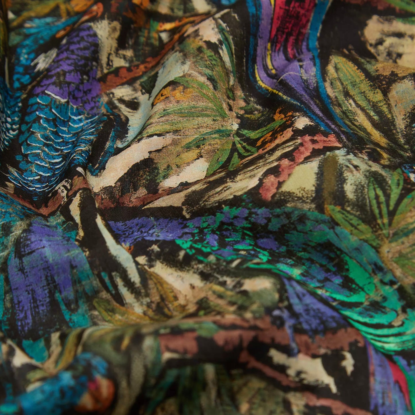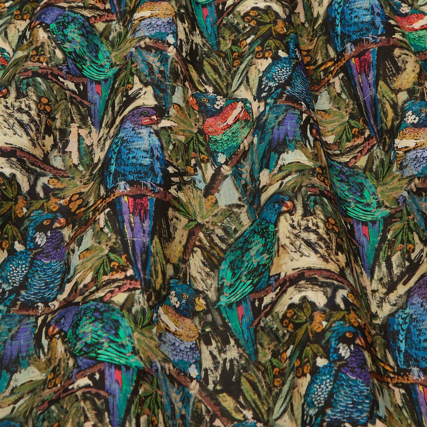 Based on a series of original artworks created for Liberty in 1987, Sonny James is a beautifully textured conversational design. Featuring colourful parrots perched on tropical branches in a nod to the infamous scarlet macaws, its loose and layered paint strokes mimic the expressive mark-making techniques of acrylic on canvas. This print is part of the Red story of our Spring/Summer 2024 collection with designs drawing from the colour’s millennia-spanning history as feature of prehistoric paintings, and one of humanity’s first symbols of love, life and vitality.