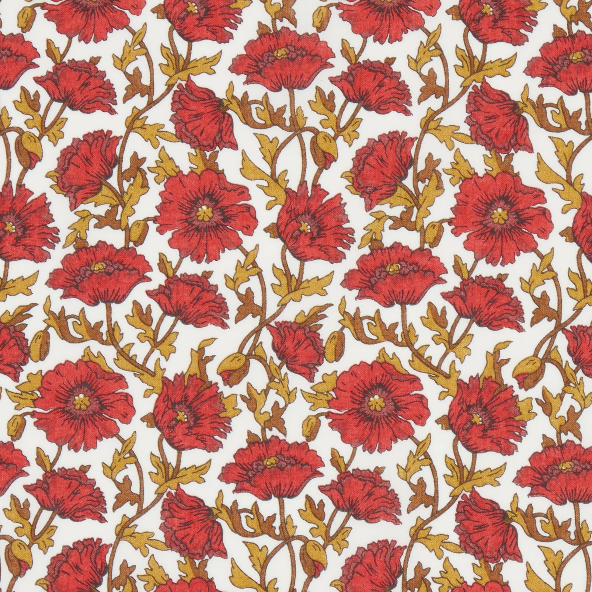 The Liberty archive holds two different versions of Astell Reece, both created in 1904 – a fabric swatch from a silk pattern book, and a paper print impression. It's very typical Arts and Crafts motif consists of poppies among an upward trail of foliage.