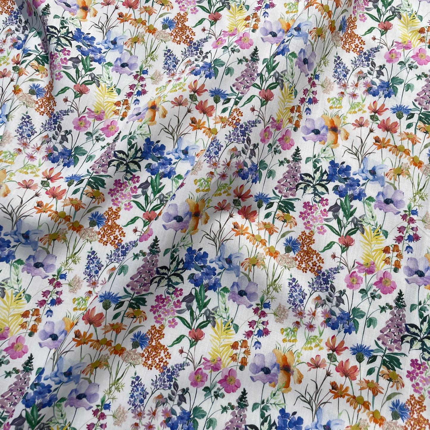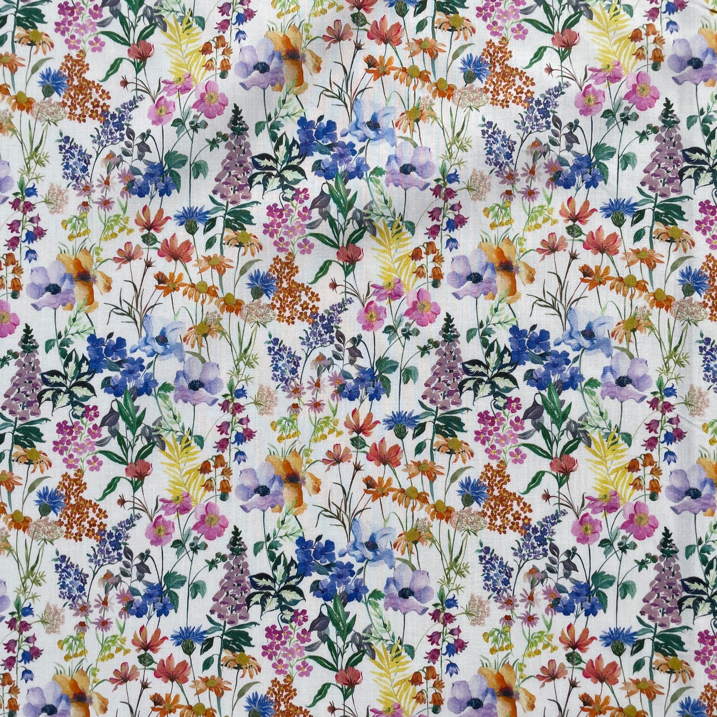 Painted by hand in the Liberty studio using a combination of gouache and watercolours, this joyous design is a meticulous botanical study which captures the charm of a blooming springtime meadow. Poppies, daisies, roses, primroses, lilac, bluebells, cornflowers and foxgloves among many others, reflect nature’s spectacular colour palette and diversity.
