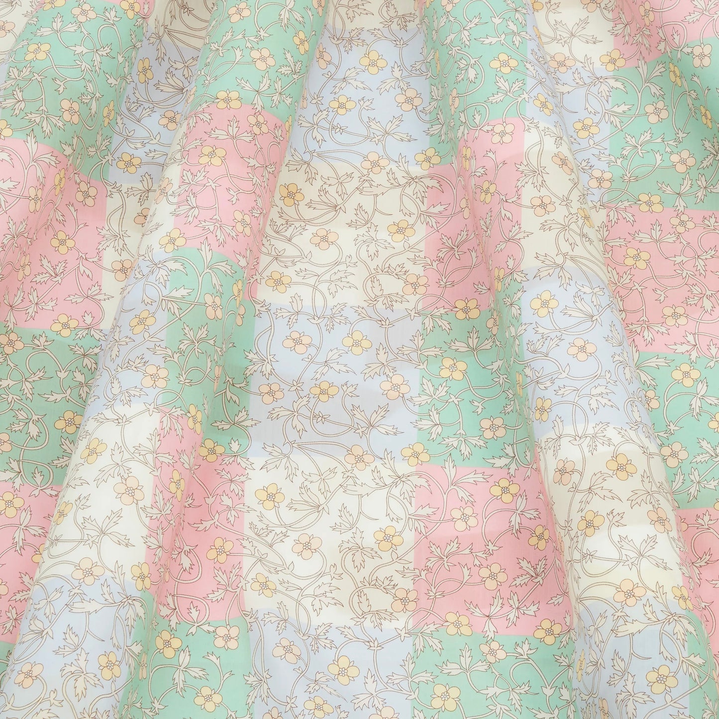 Rosita Check is a contemporary interpretation of 1963 floral design by Colleen Farr. Leafy trails with stylised roses are modernised with the addition of a checkered background. This print is part of The Cast act of Retold, bringing into the spotlight this play’s cast of architects, writers, artists, and designers have paved the way for the artistic movements Liberty have heralded since our doors first opened - leading figures that have played an integral part in weaving new narratives into the fabric of the building.