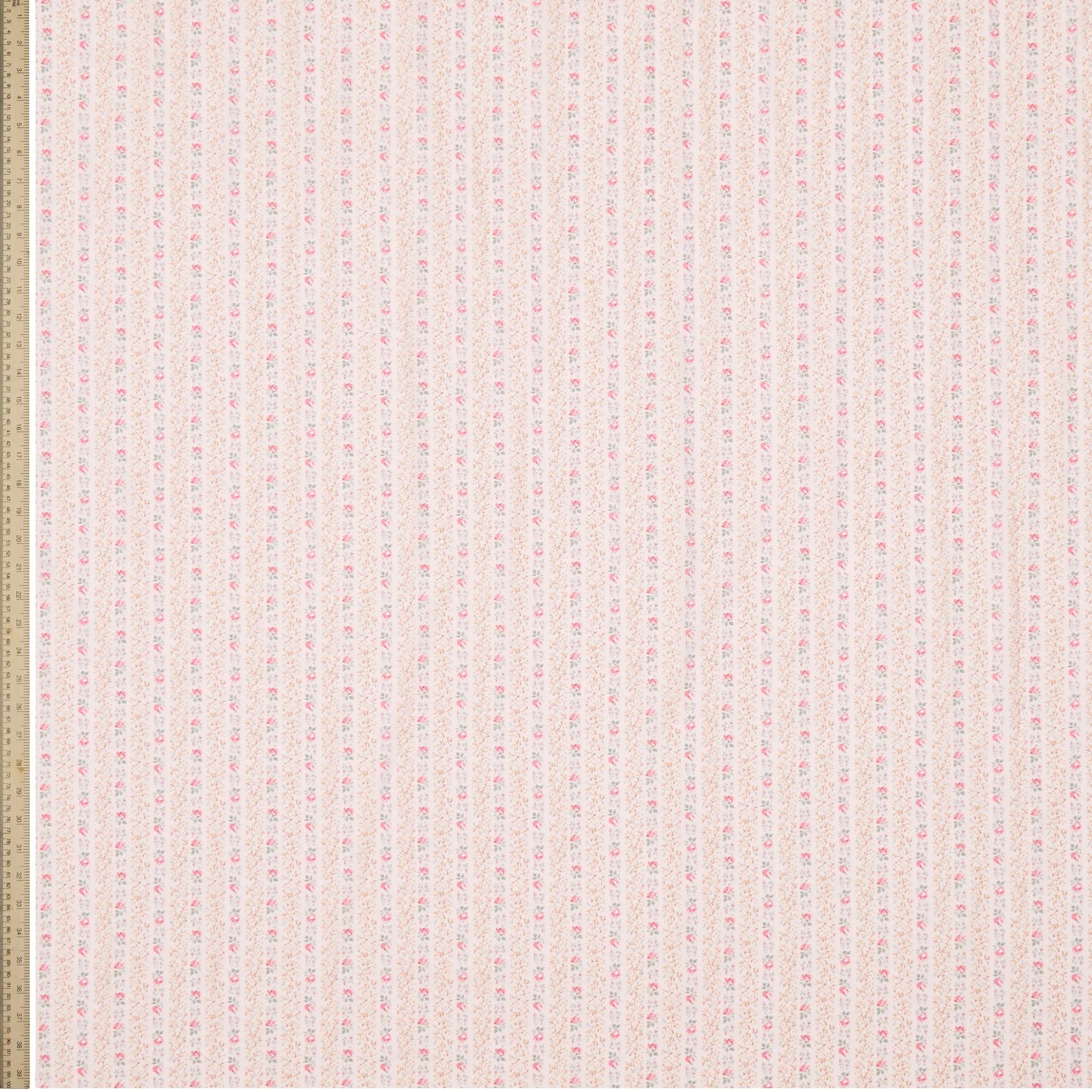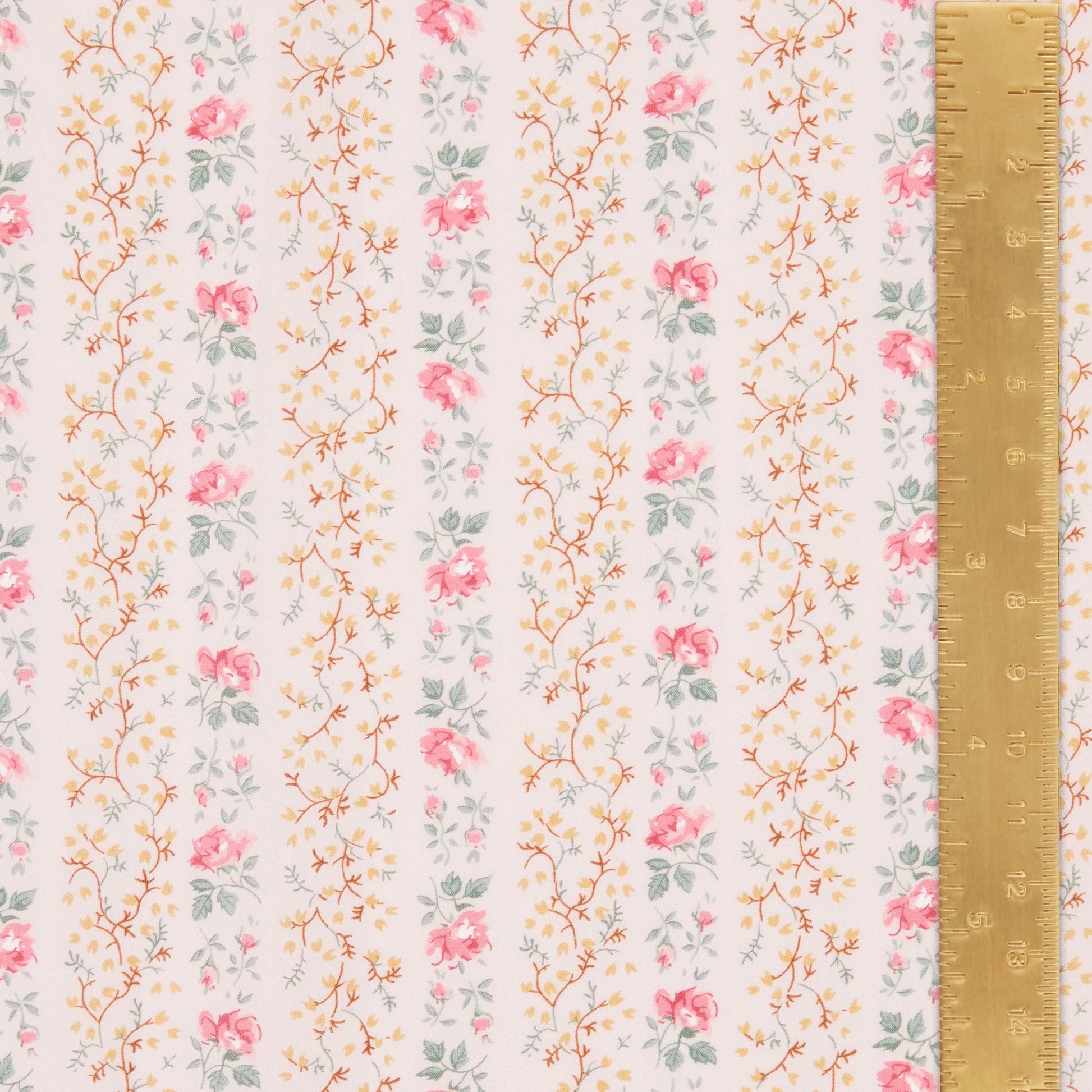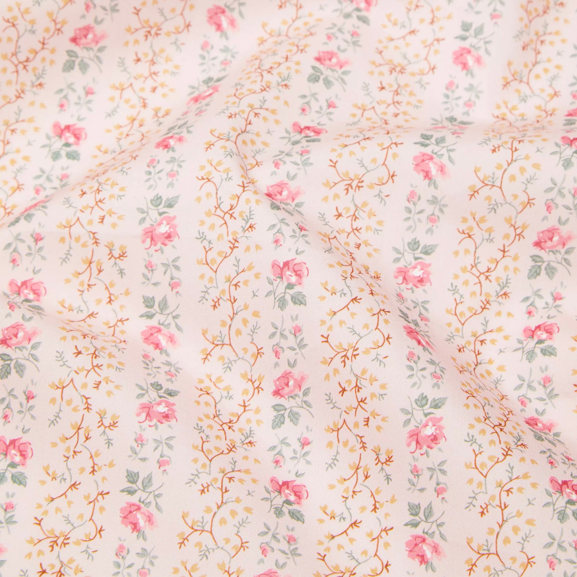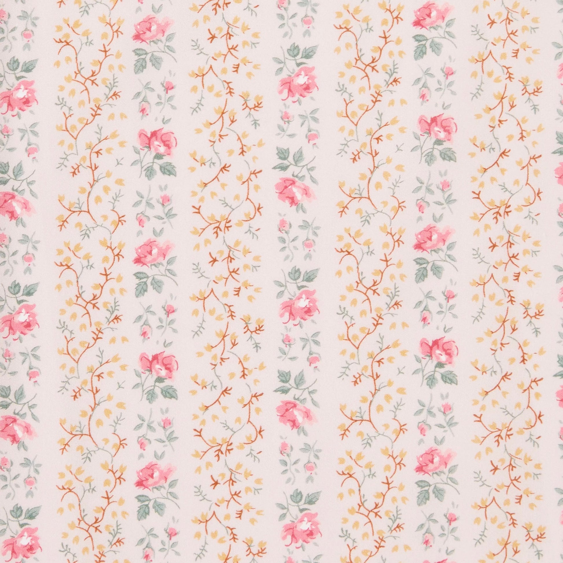 Drawing inspiration from a vintage Liberty design originating in 1957, Evie Stripe has been lovingly revived with a touch of modern finesse and recoloured in a variety of light and dark palettes. Its exquisite blend of delicate buds and roses, intricately woven into a directional stripe layout, imbues the pattern with a uniquely eclectic charm.