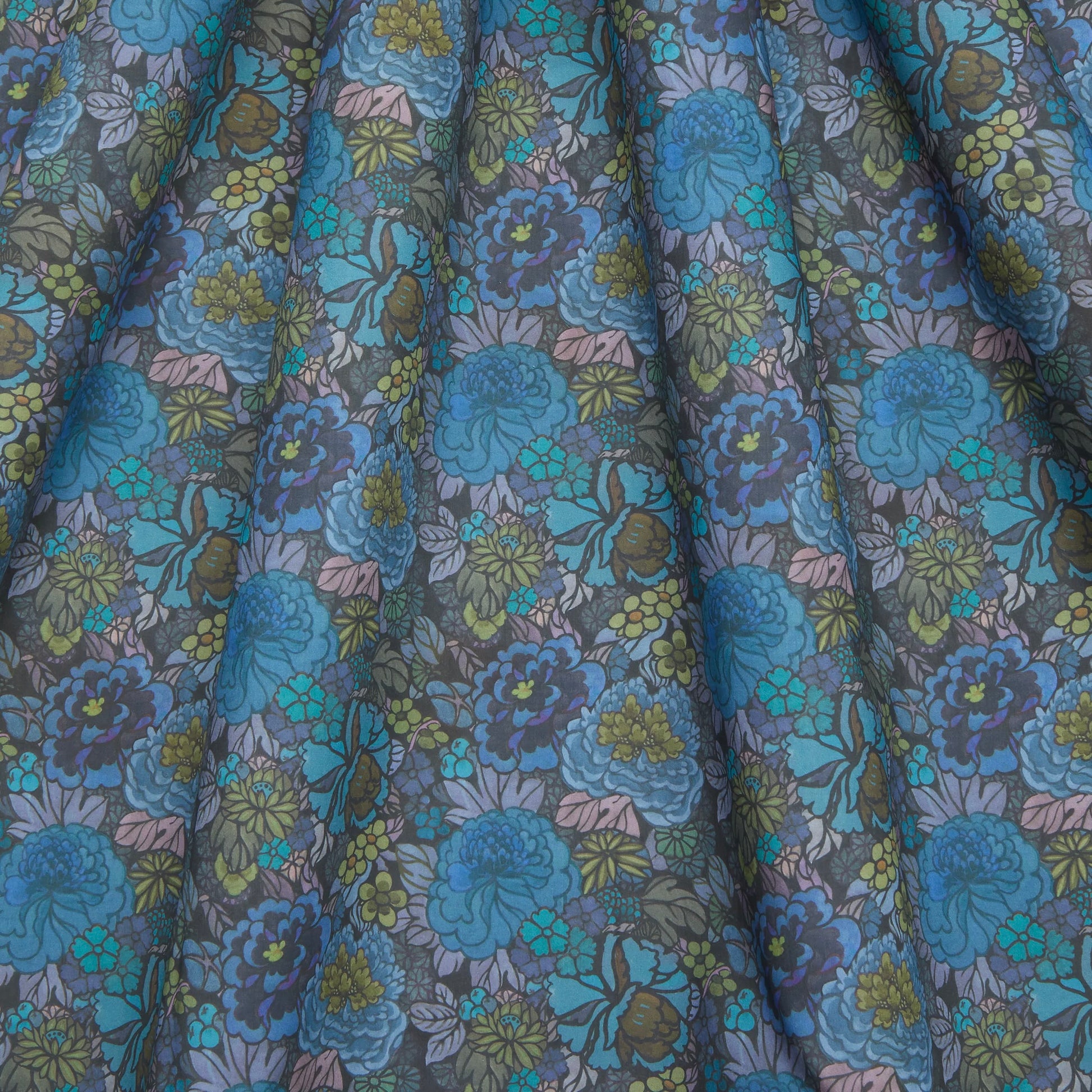 In the early 1990s, Liberty achieved a significant milestone with the establishment of its Japan office and design studio in Tokyo, forging a poignant link to its past. To commemorate this enduring connection, an artwork was chosen from the archive, shaped by a long-standing admiration for Asian-inspired decorative art and design. Richly rendered in deep, inky hues, Heritage Garden features hidden fruits amongst beautifully stylised chrysanthemums, peonies, and, of course, Japanese blossom flowers. This print is part of the anniversary collection’s final chapter, Collectibles. Offering a design for each decade, this timeline of hero prints encapsulates 150 years - exploring the design house’s varied and influential handwriting while honouring key moments of creativity and discovery.