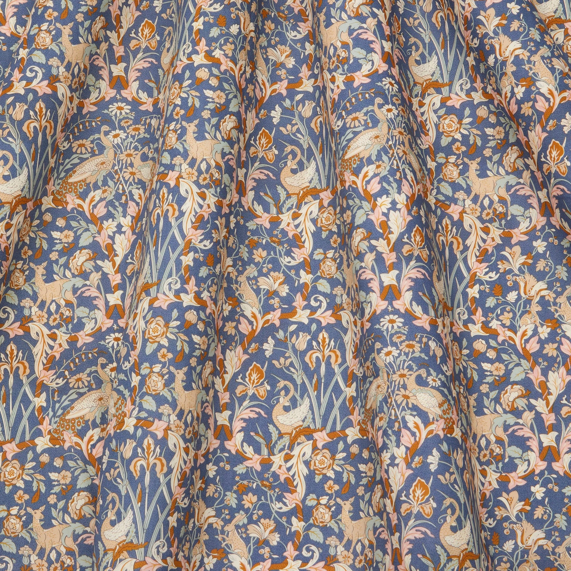 Hand-painted in the Liberty studio, Joan tells a poignant story of collaboration across generations. This Arts & Crafts style conversational is a modern iteration of Walter Crane’s timeless ‘The Four Seasons’ textile pattern. Looking through four vignettes framed by trailing ivy, each floral scene symbolises a distinct season, teeming with nature’s wonders. Amidst delicate roses, bluebells, tulips, daisies and irises, one discovers a lively cast of characters: peacocks, butterflies, swans, hares, frogs, bees, and deer. This print is part of the second chapter of this collection, Collaboration, which reflects the current design team’s celebration of the techniques and styles of their predecessors - bridging the gap between past and present.