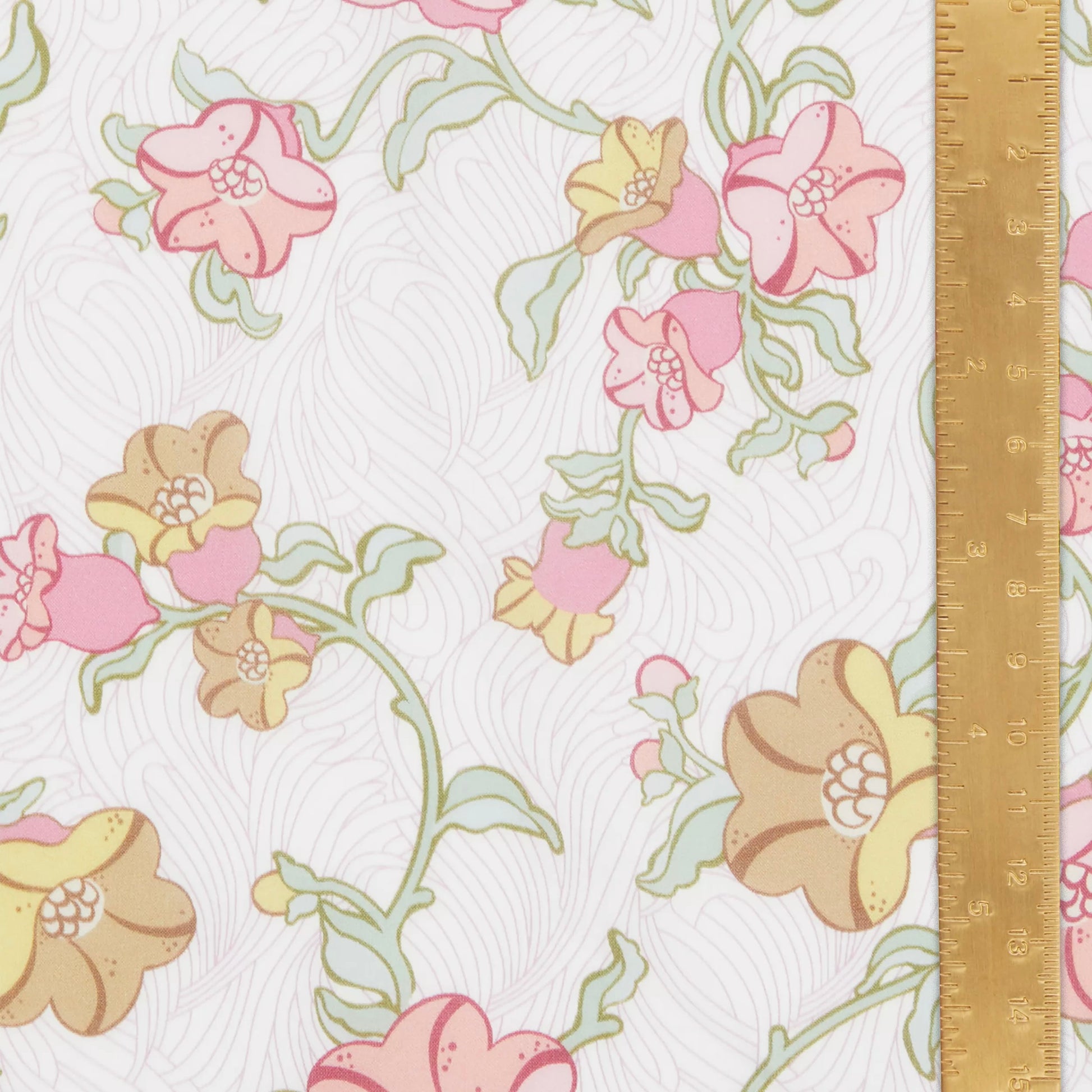 Forging subtle connections between past and present, vibrant blooms gracefully traverse the fabric in this dramatic botanical trail. Reminiscent of a Liberty textile pattern created by designer John Scarratt Rigby in 1897, Judy Jane follows traditional Art Nouveau principles rendered. This print is part of the second chapter of this collection, Collaboration, which reflects the current design team’s celebration of the techniques and styles of their predecessors - bridging the gap between past and present.