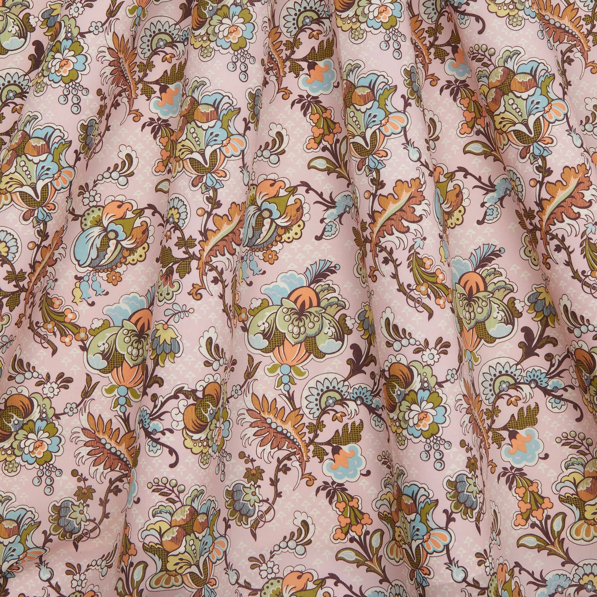 Honouring the enormous influence of the Huguenot émigrés on England’s textile industry, Weaver’s Wonder is reminiscent of the fashionable Spitalfields silk weaves of the early 18th century. Subtle geometric touches enhance the grandeur of its decorative flowers and swirling foliage, imbuing it with a modern Baroque aesthetic. This print is part of the Craftsmanship narrative of this collection, exploring the creative process from within the Liberty archive, from print impressions and embroidered studies, to ceramics, jewellery, and furniture. Uncover the origins of the designers’ musings through artworks inspired by their sketchbooks and prototypes.